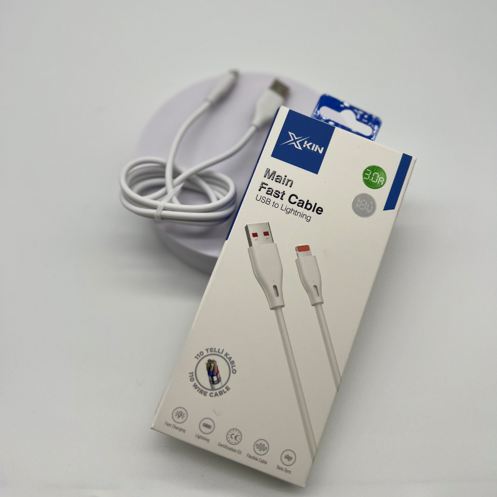 XKIN Main Fast Cable USB-A to Lightning – 18W / 3.0A Hızlı Şarj & Data Kablosu