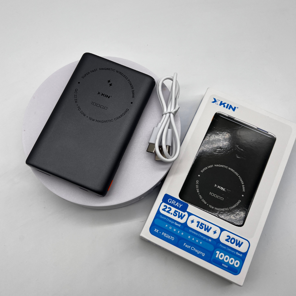 - Süper hızlı şarj desteğiyle tasarlanan XKIN manyetik powerbank, kablolu ve kablosuz şarj seçeneklerini bir arada sunar. 15W Qi manyetik kablosuz şarj, 20W Power Delivery (PD GEN2) ve 22.5W Quick Charge Gen3 desteği sayesinde cihazlarınızı hızlı ve güvenli şekilde şarj eder. İnce ve kompakt tasarımıyla günlük kullanım ve seyahatler için uygundur.